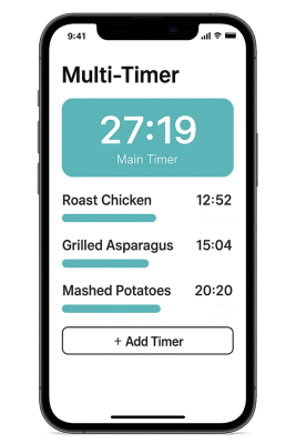 "As a professional chef, timing is everything. Chef’s Multi-Timer has completely changed how I manage my kitchen. I can set each dish to finish exactly at my serve time, and the color-coded progress bars make it effortless to see what’s next. It’s like having a sous-chef who never forgets a timer!"